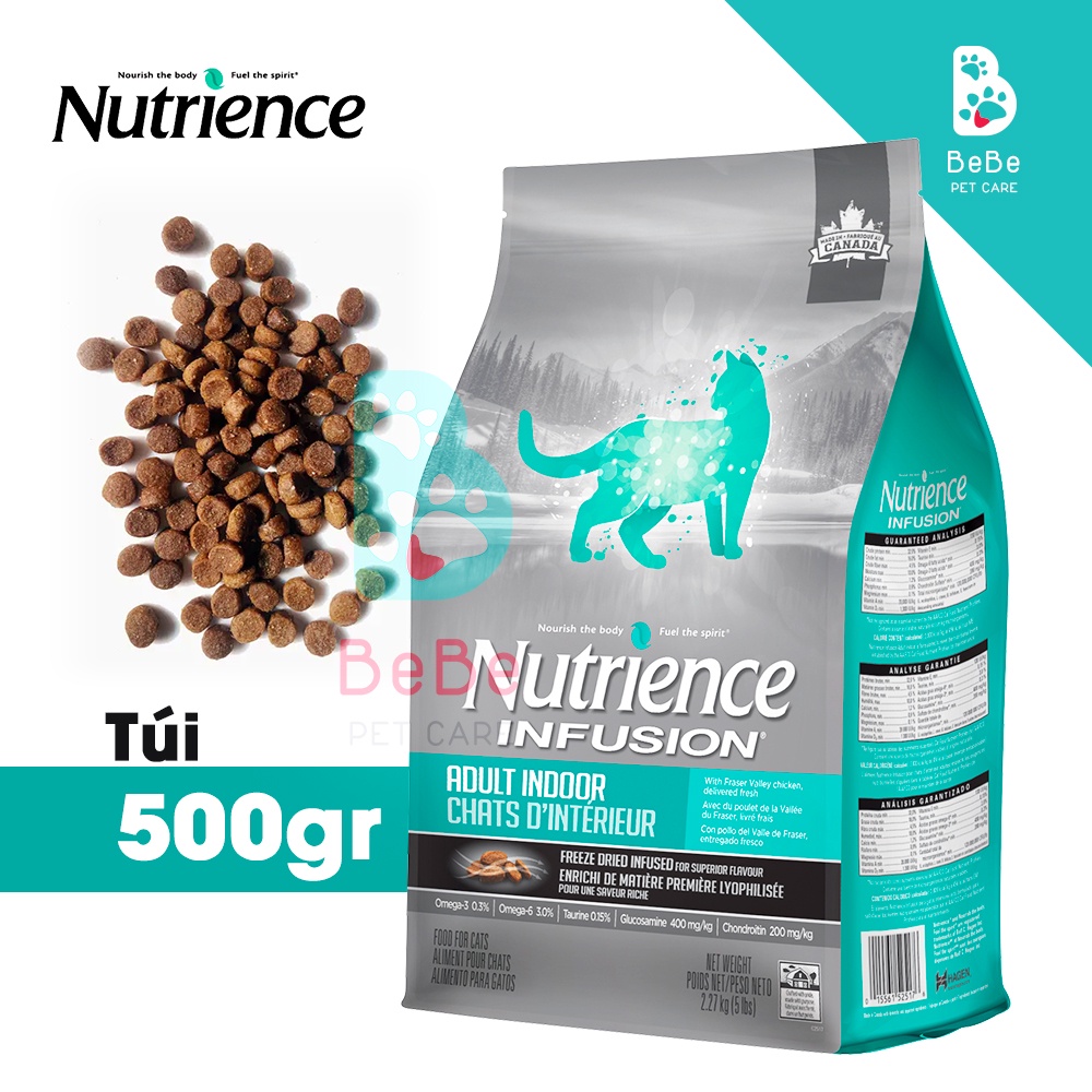 Phù hợp cho mọi giống mèo ở mọi lứa tuổi. Mèo nuôi trong nhà phải đối mặt với nhiều vấn đề về cân nặng và chứng nghẹn lông. Chế độ ăn của sản phẩm Nutrience Infusion Adult Indoorl cho Mèo trưởng thành sẽ giúp tối ưu hóa sức khỏe của Mèo. ƯU ĐIỂM:- Cơ bắp săn chắc, cân nặng khỏe mạnh: mèo trong nhà thích nằm một chỗ và ít năng động hơn so với mèo sống bên ngoài. Cung cấp cho chúng chế độ ăn giàu protein thịt chất lượng và mức chất béo vừa phải sẽ giúp chúng duy trì cân nặng khỏe mạnh và khối lượng cơ bắp. Thịt gà chất lượng cao luôn là thành phần chủ yếu trong công thức Nutrience Infusion Adult Indoor của chúng tôi.- Giải quyết chứng nghẹn lông: mèo trong nhà có xu hướng dành nhiều thời gian chải chuốt và rụng lông nhiều hơn so với mèo ngoài tự nhiên. Các loại axit béo omega-3 và omega-6 của chúng tôi sẽ giúp mèo duy trì da khỏe mạnh và làm giảm sự rụng thừa. Ngoài ra, trong công thức của chúng tôi còn chứa hỗn hợp nhiều chất xơ và tinh chất từ quả dứa để giảm thiểu sự hình thành các khối lông mèo trong cơ thể mèo cưng của bạn.- Hệ miễn dịch khỏe mạnh: sử dụng nhiều nguồn nguyên liệu tự nhiên có chứa chất chống oxy hóa cho các công thức dinh dưỡng Nutrience (quả việt quất, nam việt quất và cà rốt cùng với vitamin C và vitamin E) để chúng hoạt động cùng nhau hỗ trợ hệ miễn dịch của mèo và duy trì một trái tim khỏe mạnh.- Hỗ trợ xương và khớp: mèo ít hoạt động có thể được bảo vệ khớp và chuyển động. Chúng tôi đảm bảo số lượng glucosamine và chondroitin nhất định trong công thức này để giúp hỗ trợ khớp và duy trì chuyển động linh hoạt của mèo.- Kiểm soát mùi: công thức của chúng tôi bao gồm sự kết hợp của ngũ cốc nguyên hạt, chất xơ tự nhiên và chất xơ hòa tan (prebiotic) giúp mèo duy trì đường ruột khỏe mạnh, cũng như chiết xuất cây yucca schidigera để giảm thiểu mùi hôi của phân mèo.- Taurine tăng cường: Nutrience Infusion Adult Indoor cho mèo cung cấp mức taurine tối ưu để giúp duy trì chức năng tim bình thường và khả năng quan sát tốt.