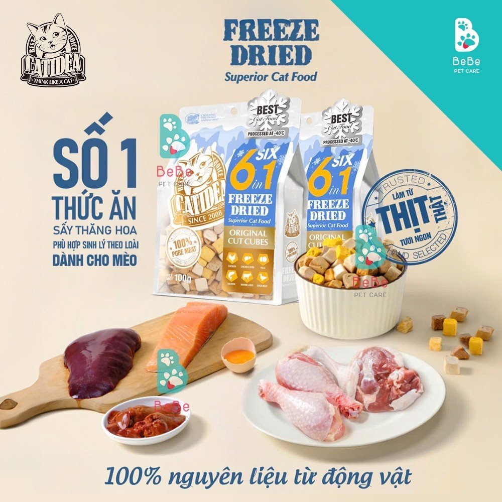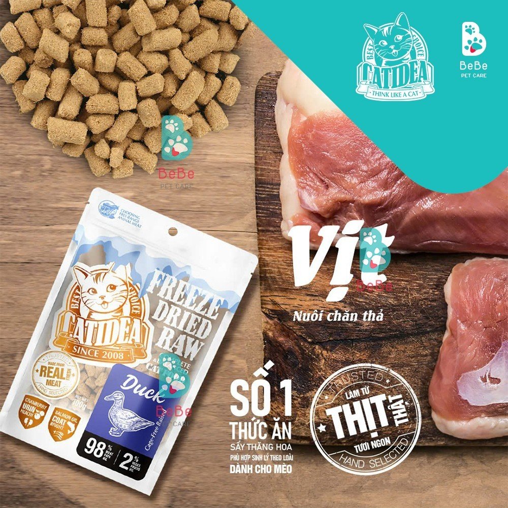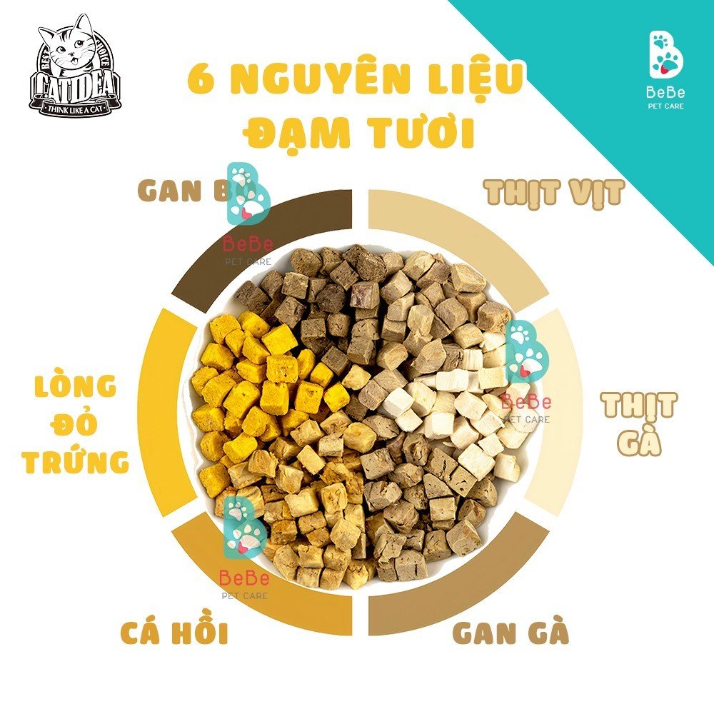 Catidea mang đến giải pháp dinh dưỡng hoàn hảo cho mèo cưng của bạn với thức ăn sấy khô chất lượng cao, được chế biến từ những thành phần tự nhiên, đảm bảo cân bằng giữa dinh dưỡng và hương vị. Được thiết kế đặc biệt cho mèo ở mọi lứa tuổi, Catidea giúp hỗ trợ sức khỏe hệ tiêu hóa, da và lông mượt mà, cùng với hàm lượng protein cao từ thịt thật giúp mèo duy trì thể trạng năng động và khỏe mạnh.