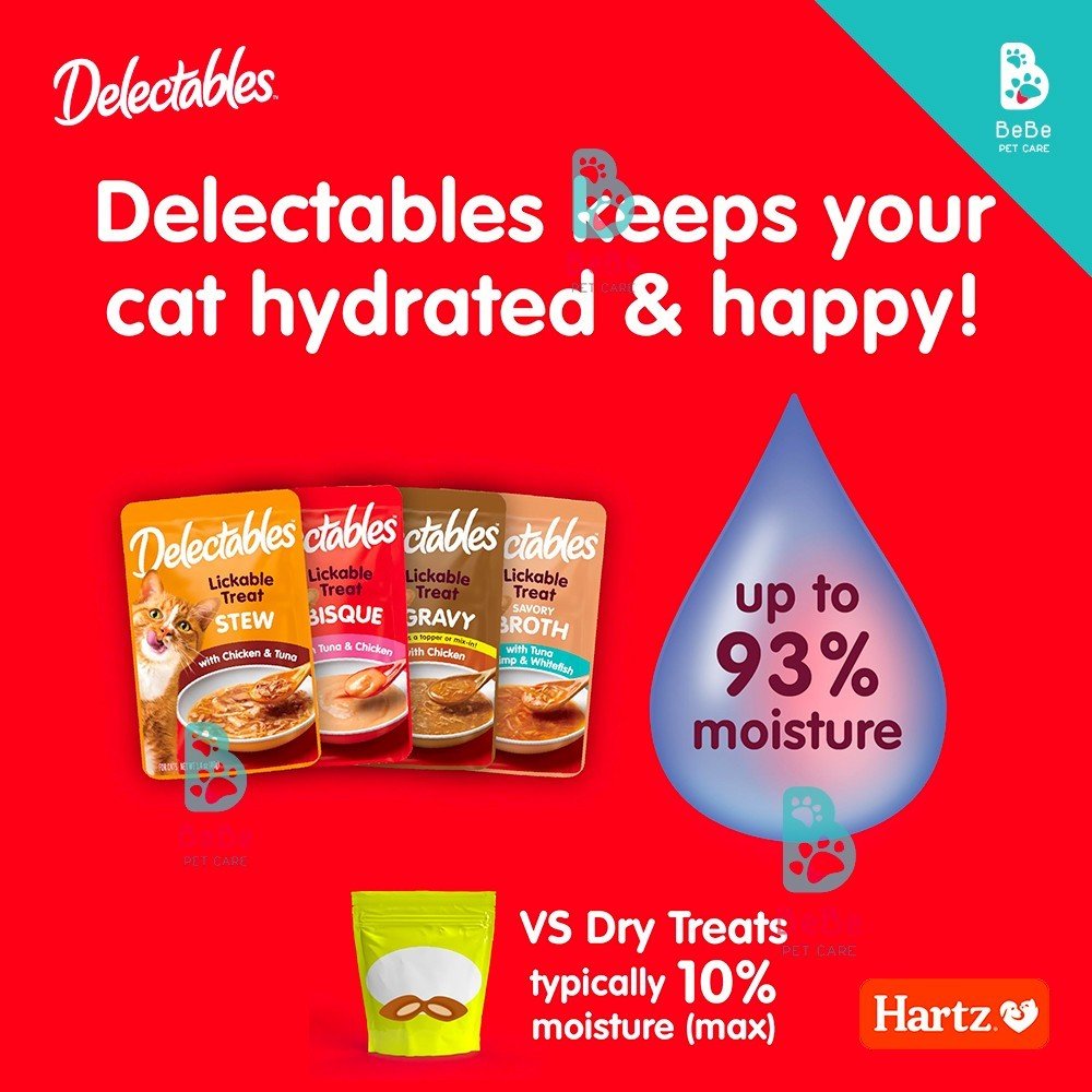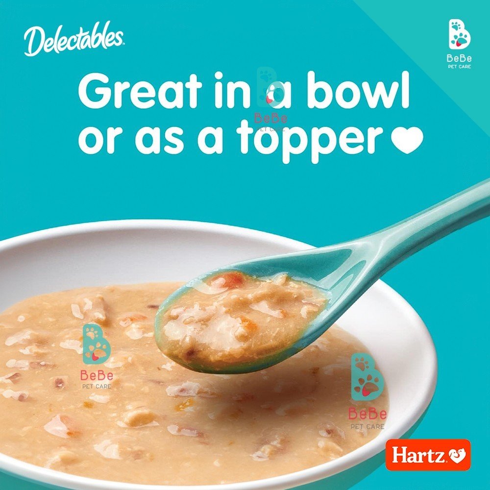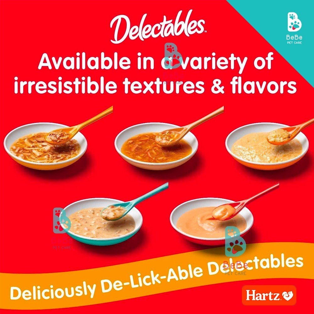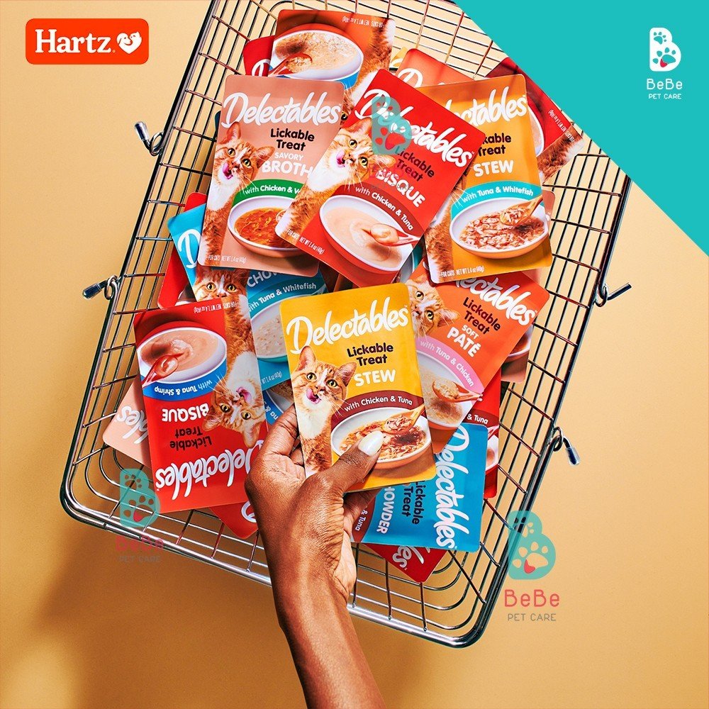 Đa dạng lựa chọn: Với nhiều hương vị khác nhau từ thịt gà, cá hồi, tôm, và nhiều loại thịt khác, Hartz Delectables mang đến cho mèo của bạn những bữa ăn đa dạng, không bao giờ nhàm chán.