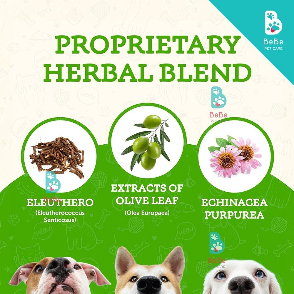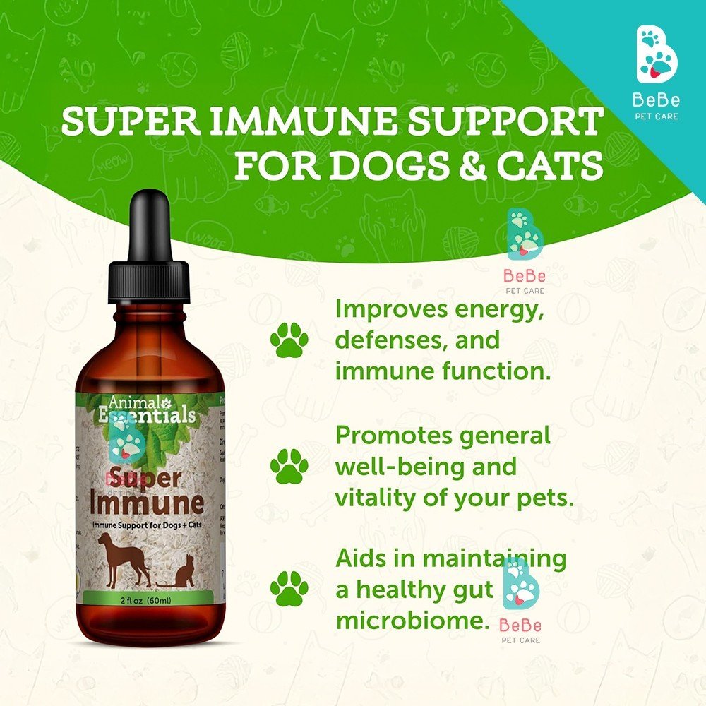 Super Immune là sự kết hợp mạnh mẽ giữa các thảo dược như lá oliu, echinacea và rễ Eleutherococcus (nhân sâm Siberia) – giúp nâng cao hệ miễn dịch, chống lại bệnh tật, duy trì năng lượng và tăng cường sức sống cho thú cưng.