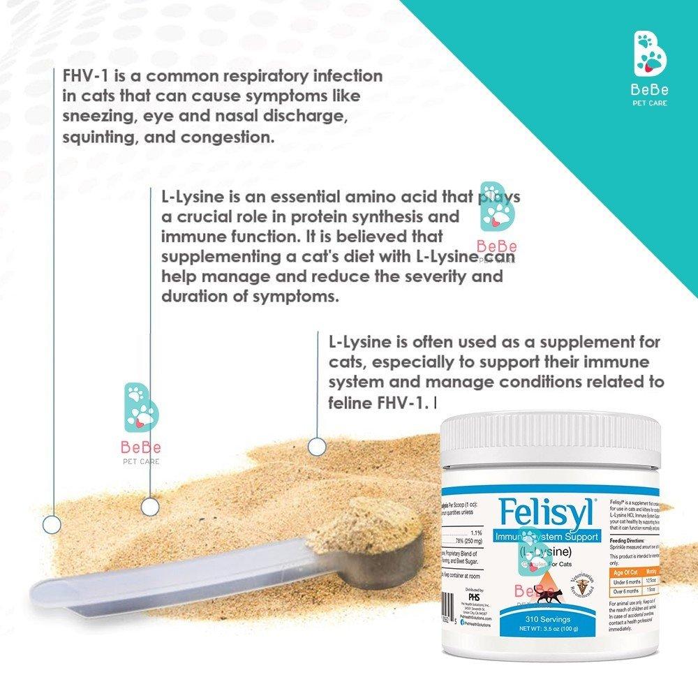 - Hỗ trợ sức khỏe hô hấp: FHV-1 thường ảnh hưởng đến hệ hô hấp của mèo. Bằng cách tăng cường phản ứng miễn dịch, các hạt Felisyl L-Lysine có thể cải thiện sức khỏe hô hấp, giảm nghẹt mũi và giảm các khó khăn trong việc thở liên quan đến các nhiễm trùng đường hô hấp.