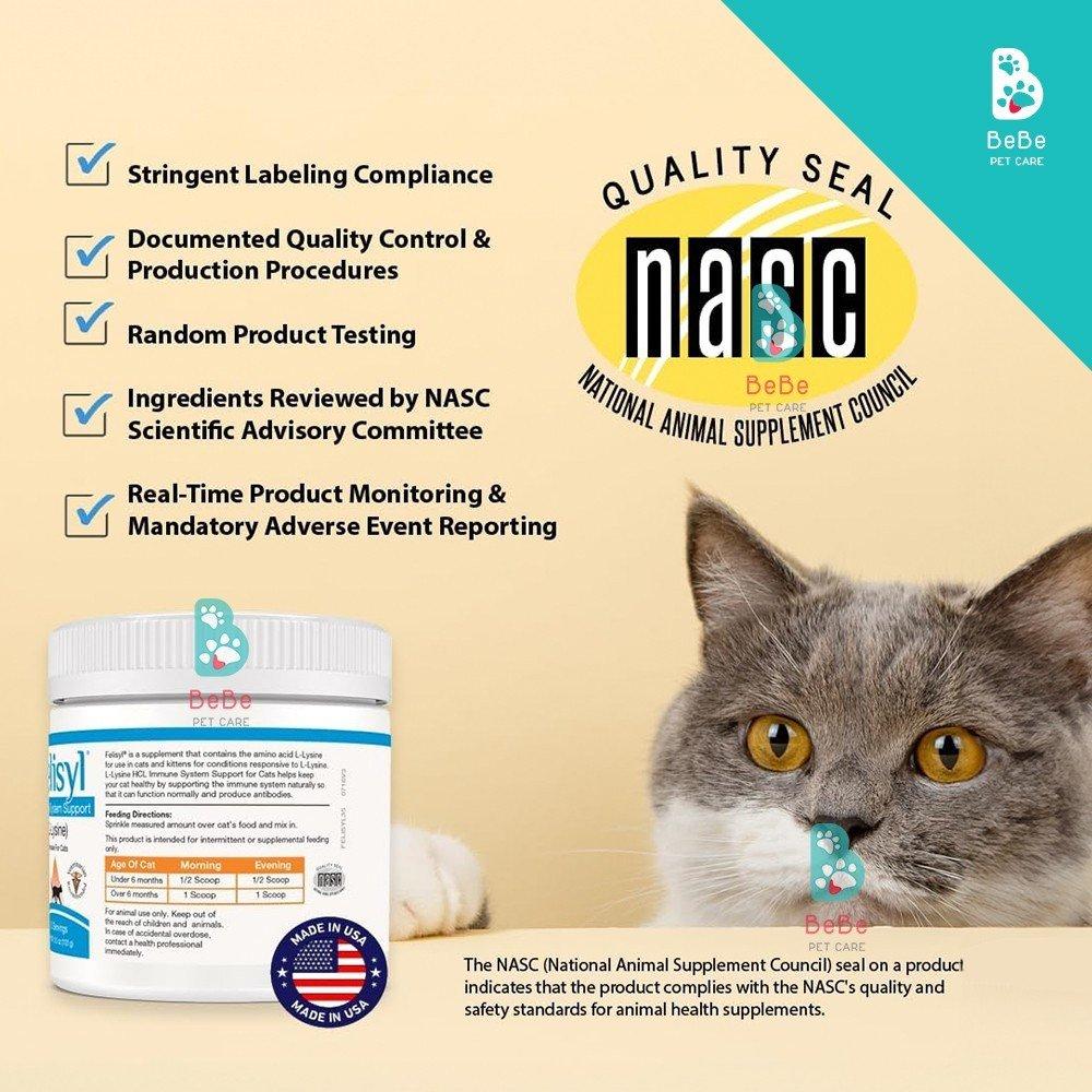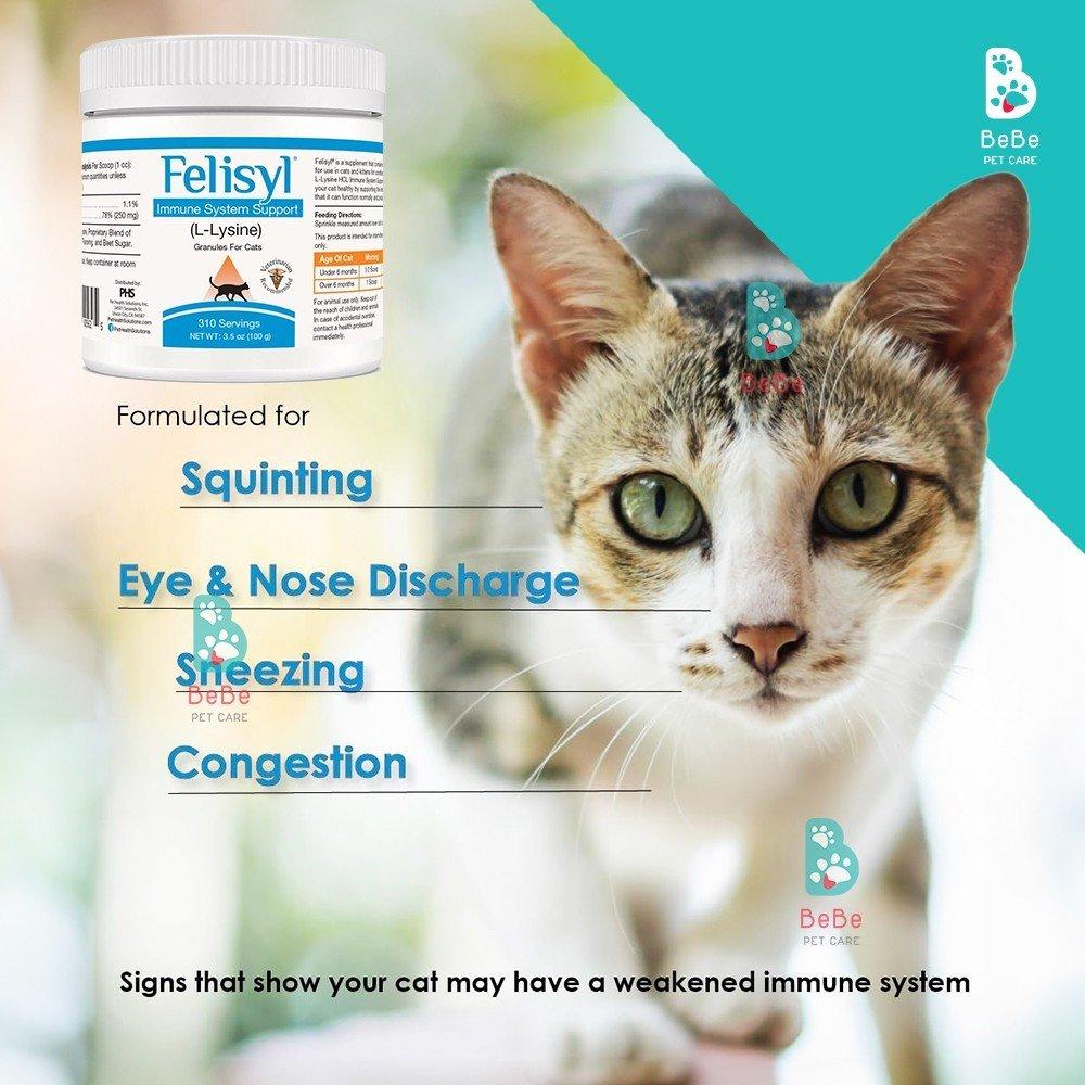 - Tăng cường chức năng miễn dịch: L-Lysine là một axit amin thiết yếu đóng vai trò quan trọng trong việc hỗ trợ hệ miễn dịch của mèo. Các hạt Felisyl L-Lysine cung cấp một nguồn L-Lysine tập trung, giúp củng cố phản ứng miễn dịch, làm cho mèo ít dễ mắc các bệnh nhiễm virus và vi khuẩn hơn.