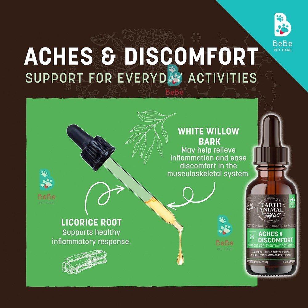 Earth Animal Aches & Discomfort là thực phẩm bổ sung dành cho chó và mèo giúp làm dịu cơn đau nhức và khó chịu thường xuyên do các hoạt động hàng ngày gây ra.